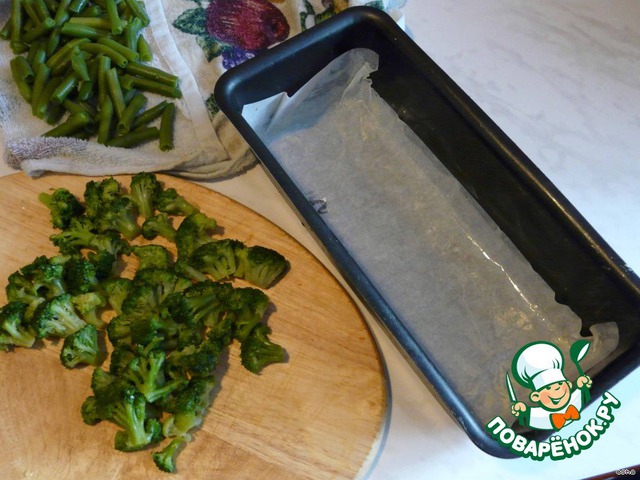 Готовим овощи для начинки. капусту отварить в соленой и подкисленной воде 3 минуты, спаржевую фасоль - 8 минут. Все овощи хорошо обсушиваем