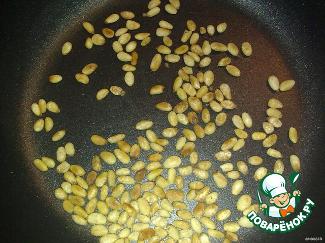 Посыпать мятой (или петрушкой) и кедровыми орешками