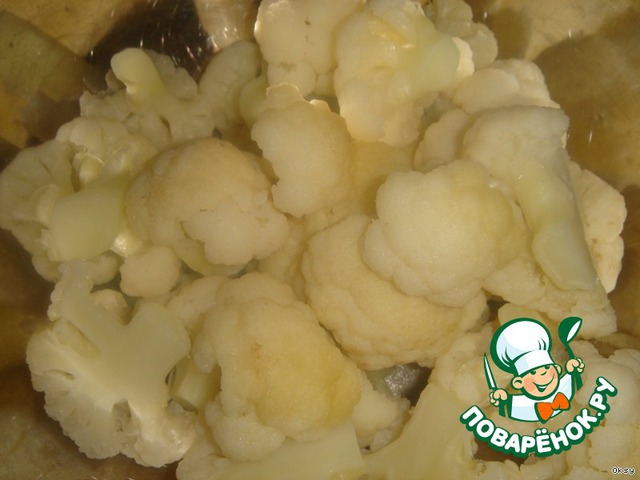 Цветную капусту отварить в подсоленной воде до готовности (но не переваривайте ее).