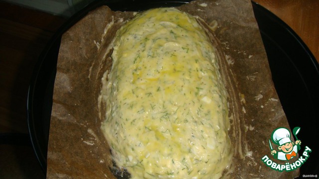 Затем оставшуюся массу и сформируйте в виде рулета, смажьте желтком и наколите вилкой в нескольких местах