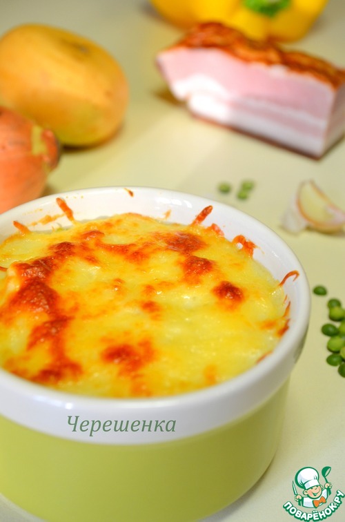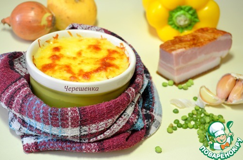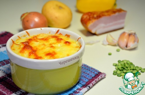 Картофельные мини-запеканки с горохом, грудинкой и грибами