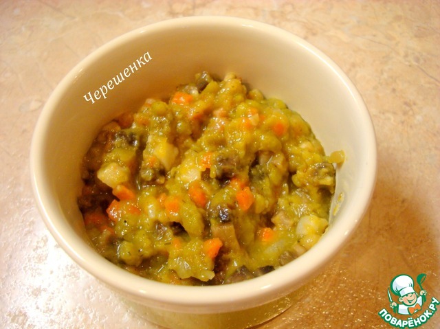 Добавить в начинку горох, перемешать.