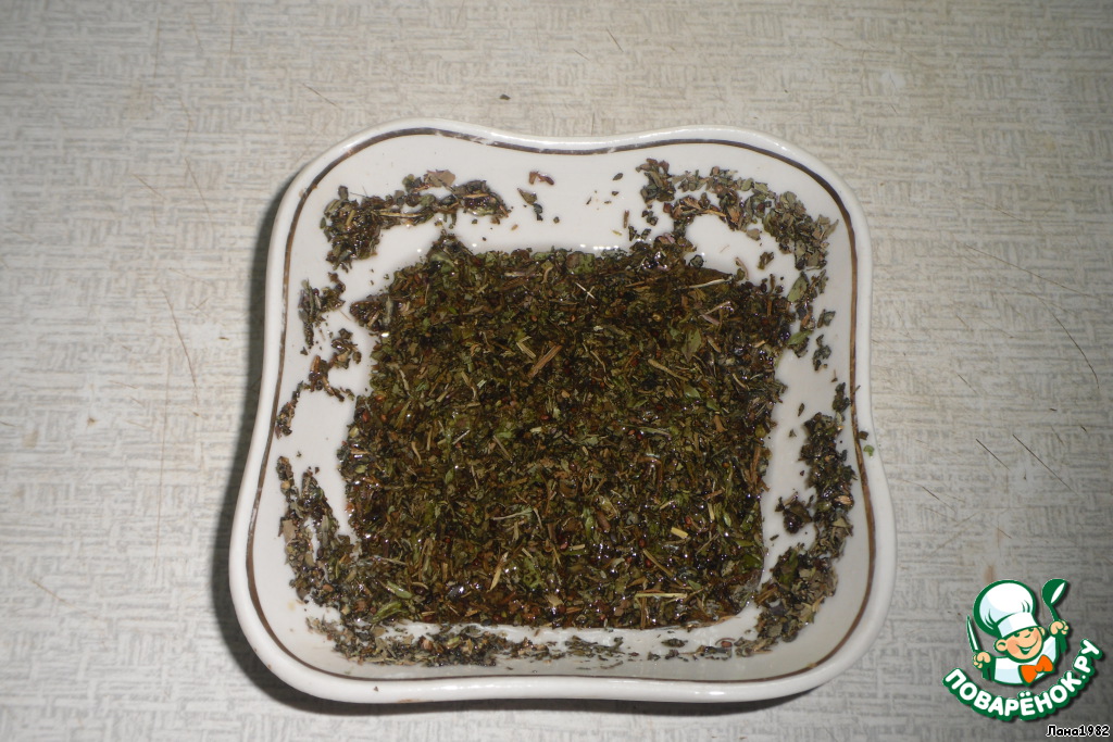 Базилик мелко нарезаем (сегодня у меня свежего базилика не оказалось, пришлось использовать сушеный…), смешиваем с оливковым маслом.