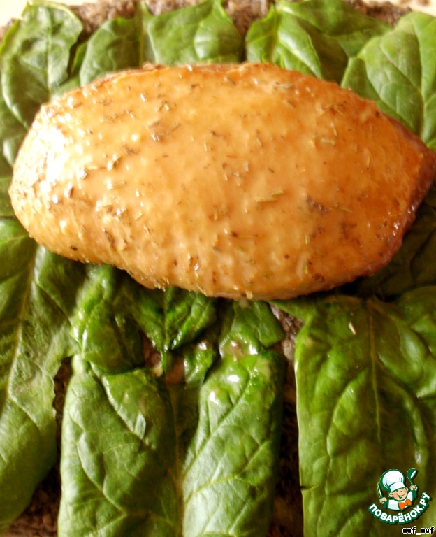 Утиная грудка со шпинатом и грибами, запечeнная в слоeном тесте