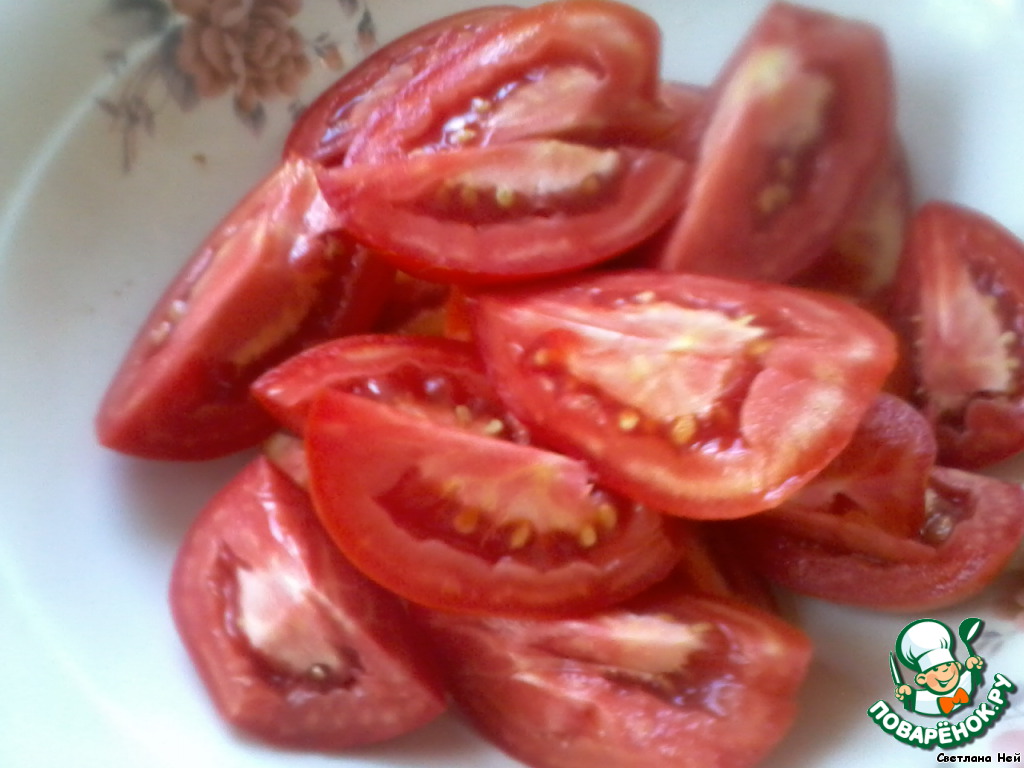 томаты вымыть и нарезать крупными кусочками