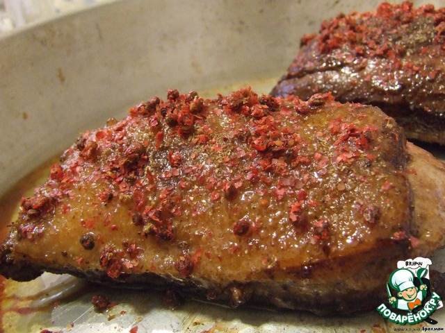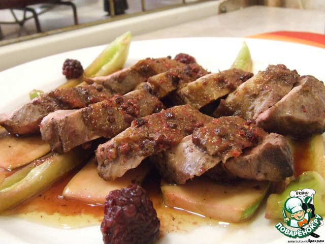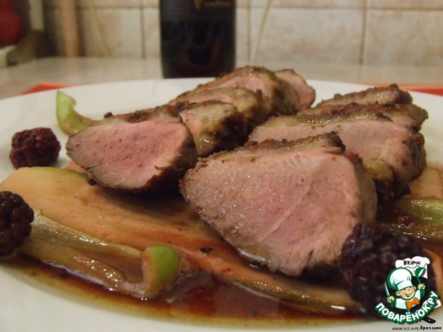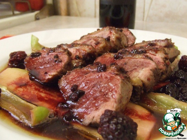 Утиная грудка на ложе из овощей под ежевичным соусом