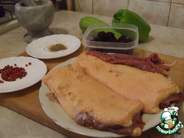 Итак, начнем. Так как с покупкой утиного филе у нас туговато, пришлось взять домашнюю уточку и позаимствовать у нее грудинку.