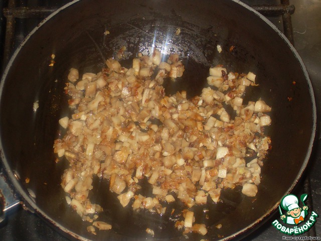 В фарш добавить обжаренные грибы и снова все хорошо перемешать.