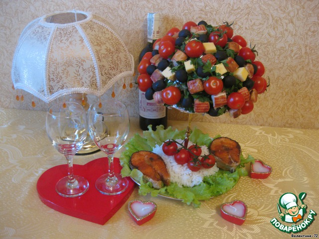 Жареная семга с медово-горчичным соусом под "Деревом Адама"