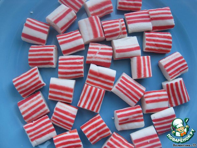 Крабовые палочки режем на квадратики