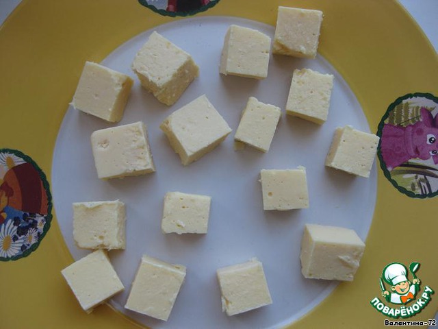 Сыр нарезать кубиками.