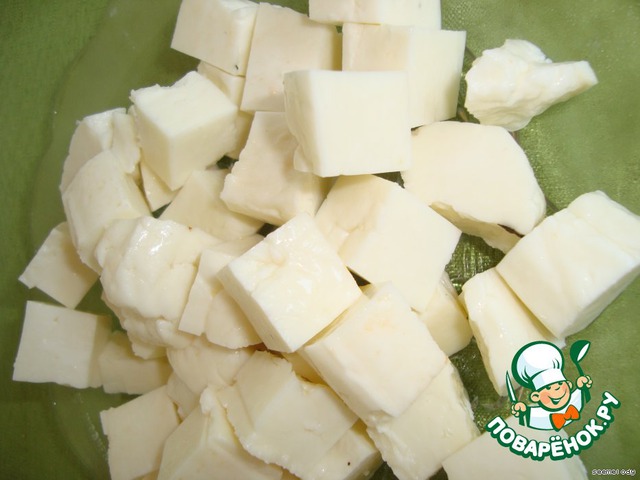 | Халуми - традиционный кипрский белый сыр. Поистине национальный продукт! Сыр готовят из смеси овечьего и козьего молока, с добавлением сушеной мяты, что придает сыру своеобразный привкус. Халуми поджаренный на гриле это, можно сказать визитная карточка любой кипрской таверны. Ведь при нагревании сыр не растекается, а покрывается красивой золотистой корочкой и сохраняет форму. В Греции также любят этот изумительный сыр - Халуми и готовят разные блюда с ним. Это одно из них. |