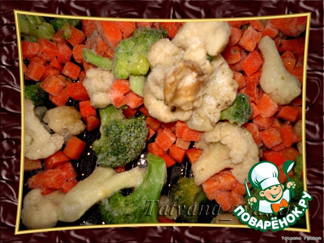 Я брала замороженные овощи, можно готовить и со свежими. Замороженные овощи выложить в сковороду с растительным маслом, тушить до готовности.