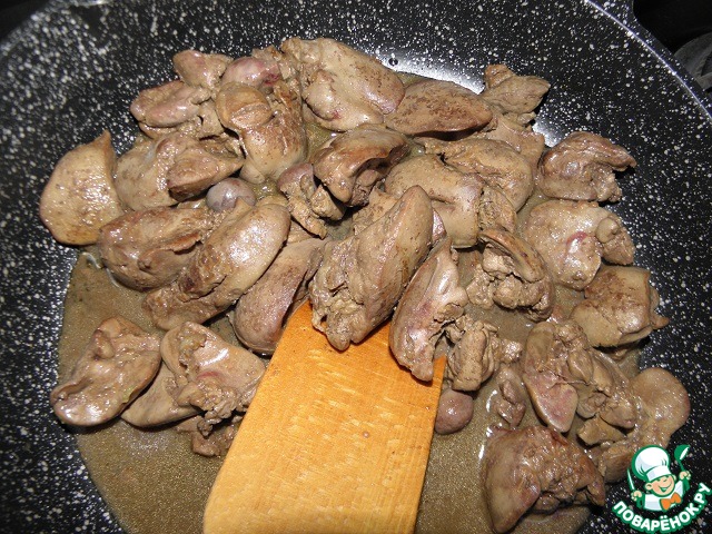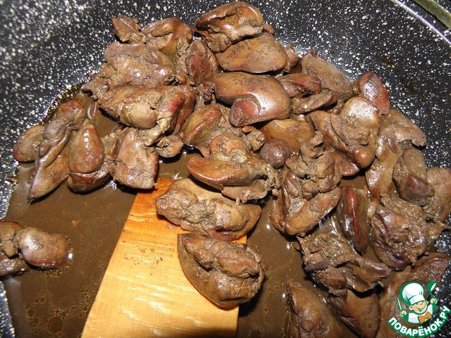 Влить вино, соевый соус и подсолить ( немного) Обжарить до готовности печени 7-8 минут