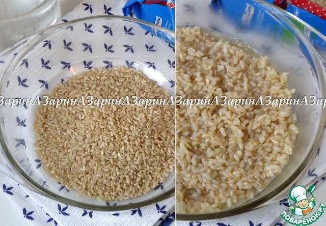 Цельнозерновой рис залить тремя стаканами воды и сварить до полной готовности. В конце добавить пару ложек сливочного масла.