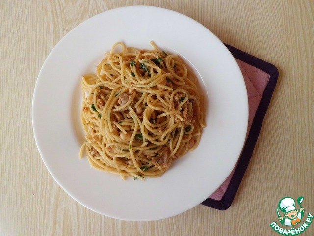 Спагетти с печенью трески