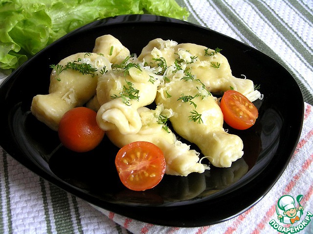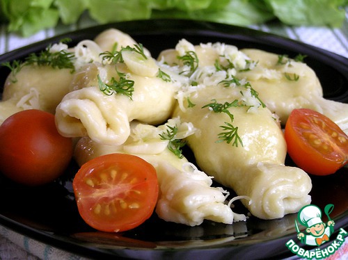 Разложить по тарелкам, полить чесночным маслом* и посыпать тертым сыром и рубленной зеленью. *Для чесночного масла растопить в маленькой сковороде сливочное масло с нарезанным чесноком до характерного аромата.