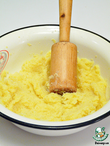 Достать картофельное пюре из холодильника, руки смазать растительным маслом, налепить котлетки (размером с яйцо).