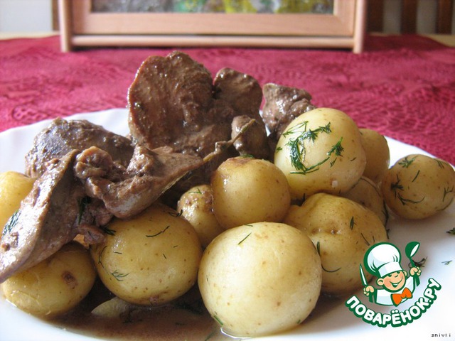 | Такую печеночку я впервые попробовала в ресторане с одноименным названием. Там подают блюда японской кухни. Единственное место, где есть приличные суши. И вообще, мне очень нравится, как там готовят. Так вот, я и попыталась воссоздать тот вкус, что был у этой печеночки. Ну, и на гарнир, конечно же, картошечка. |
