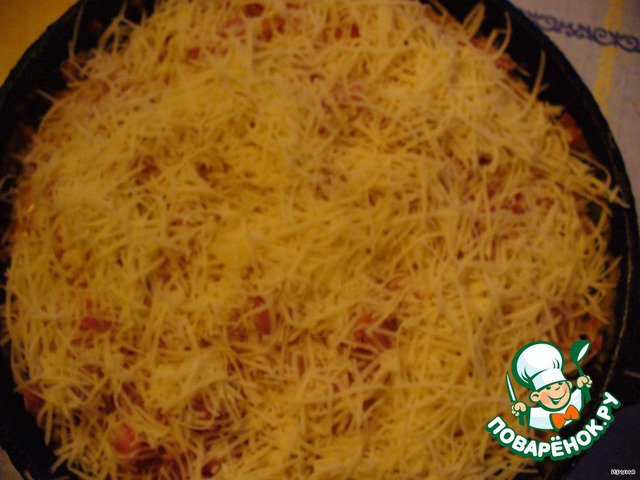 А на бекон разложить тёртый сыр. Запекать в разогретой до 200 градусов духовке 30 минут.