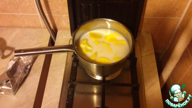 2. Залейте картофель молоком, доведите до кипения на среднем огне. После закипания варите 8 минут.