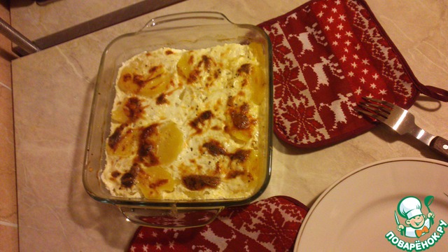 | Gratin dauphinois, то есть гратан по-дофински, родом из провинции Дофине, что в долине реки Роны. Состоит из нескольких ингридиентов, в основном, картошки, сыра и молока. Лучше всего запивать бордо или божоле вилляж, но подойдёт и полусухое белое вино. |