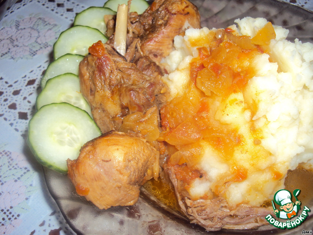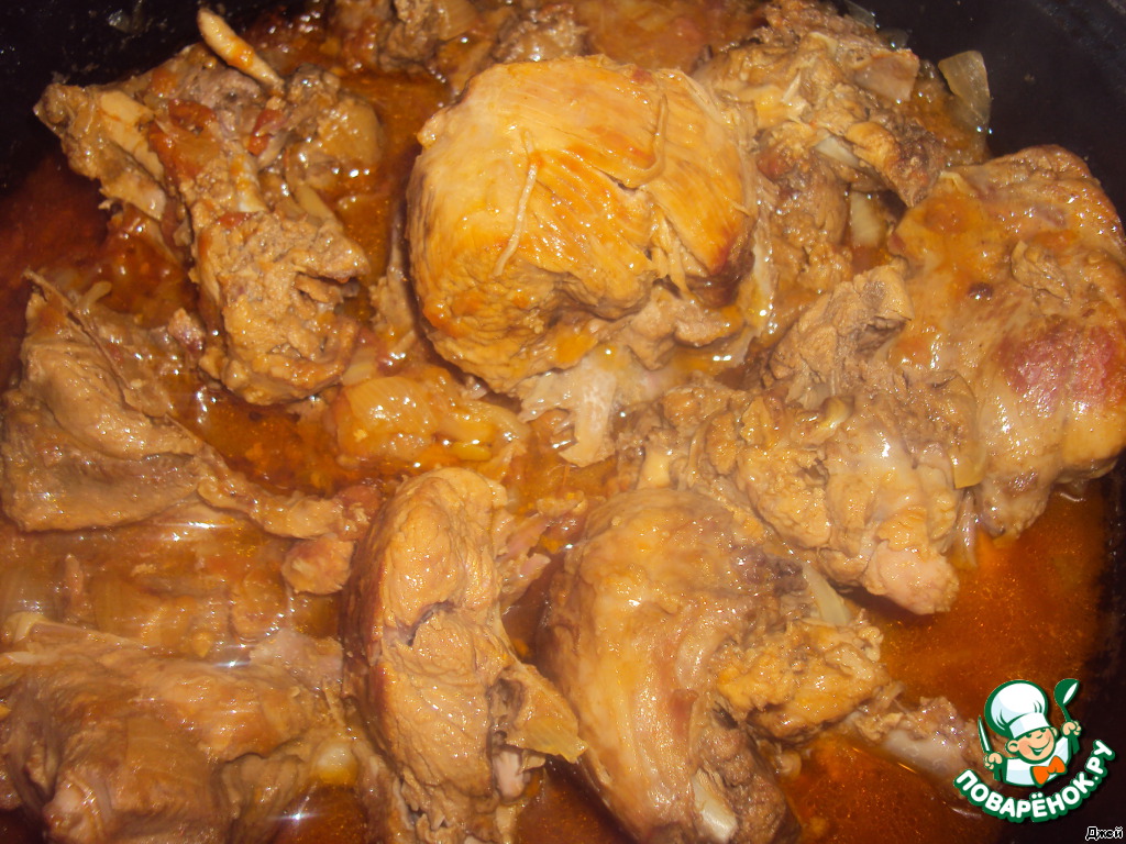Далее добавляем к нашему мяску лук, помидоры, сок лимона, соль и вино. Тушим до готовности.