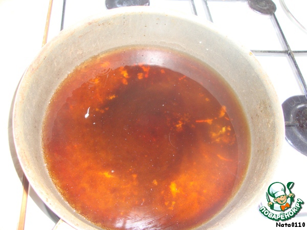 Теперь к сахару добавляем соевый соус (я добавила 3 ст.л.), специи и, если хотите, немного соли.