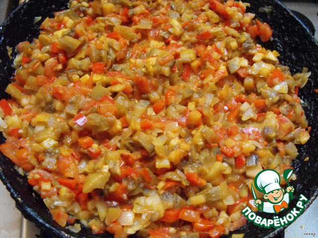Добавит баклажаны и яблоки, готовить еще минут 5.