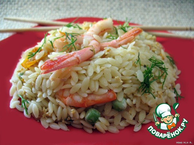 После этого положить в сковороду сваренные орзо и прогреть, помешивая, минуту.