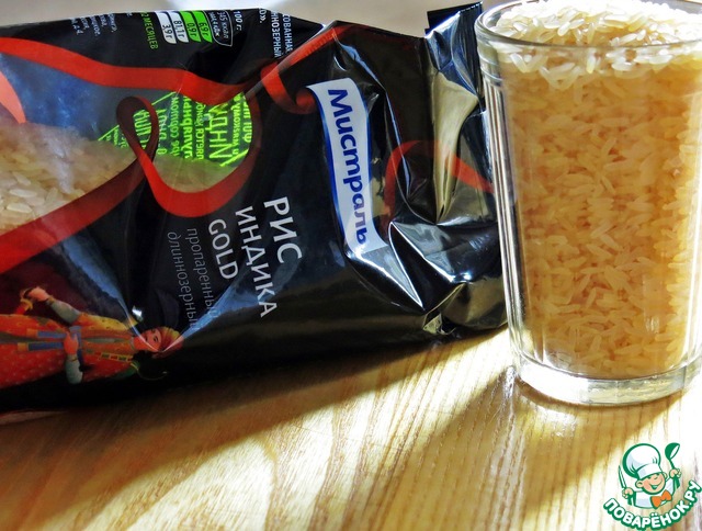 Начнем мы, конечно, с риса. Отмеряем граненый (проверенный временем!) стакан риса. Я использую рис "Индика Gold" от ТМ "Мистраль". Он отлично подходит для любых целей!