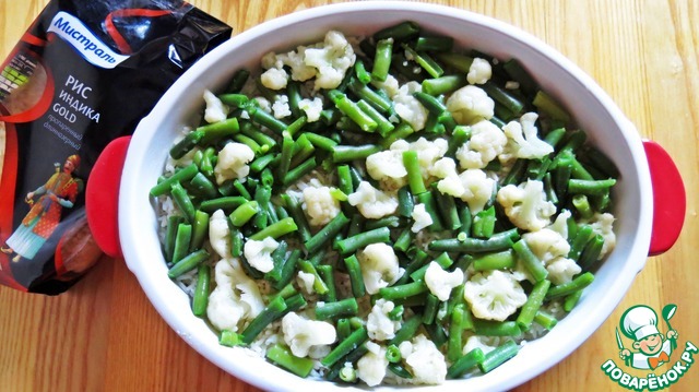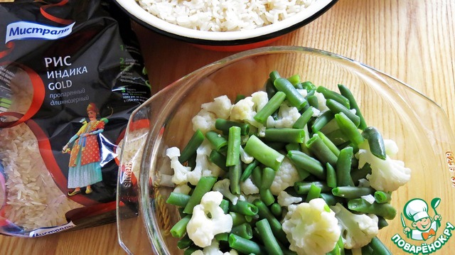 Третьим - овощи (цветная капуста+стручковая фасоль).