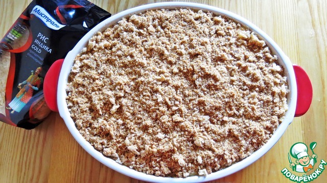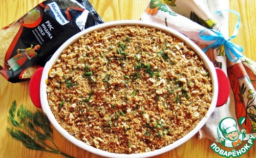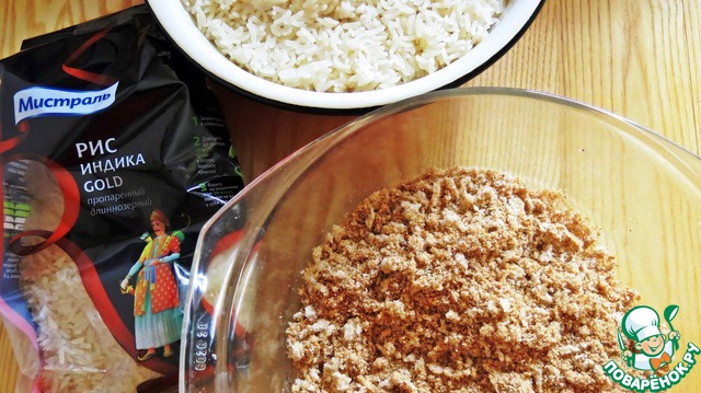 Ну и последний подготовительный шаг. Панировочные сухари смешиваем с хлебной крошкой (без корочки. я взяла около 3 кусочков белого батона) и с 50 гр. нарезанного сливочного масла.