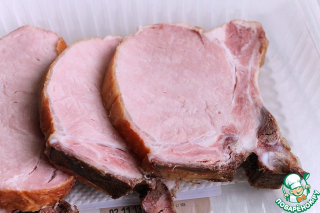 А вот и касслер, о котором я уже упомянула. В принципе, обычная подкопченная свинина, мясо не сухое. Немцы его не едят в таком виде, а по мне так оно уже готовое в принципе.. ну и ладно с ними, немцами. Продолжаем готовить:)