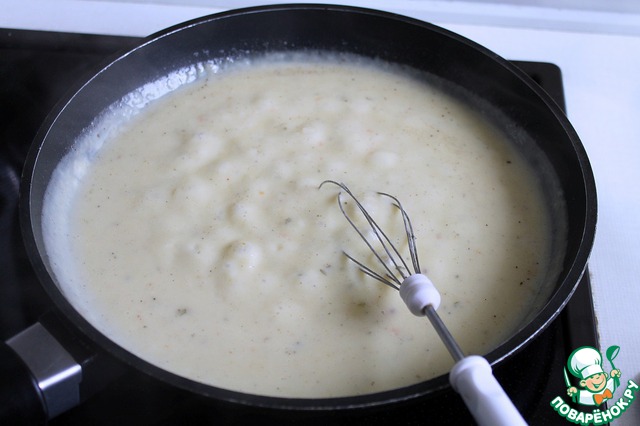 Постепенно вливаем молоко (продолжаем тщательно мешать!), а затем и овощной бульон. Если бульон не соленый - посолить. Можно приправить перцем и мускатным орехом. Еще минутку готовим соус и все, готово ;)