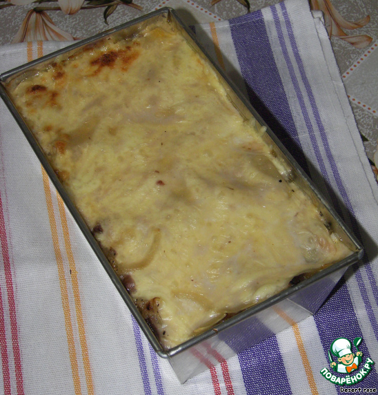 P.S. Я люблю, когда много сыра. Поэтому, я каждый слой посыпала сыром более, чем щедро))). Но, в этом случае, начинка после сервировки начинает предательски вытекать - сыр-то расплавился!