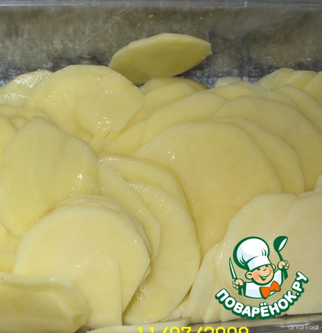Несколько картофелин нарезаем тонкими кольцами