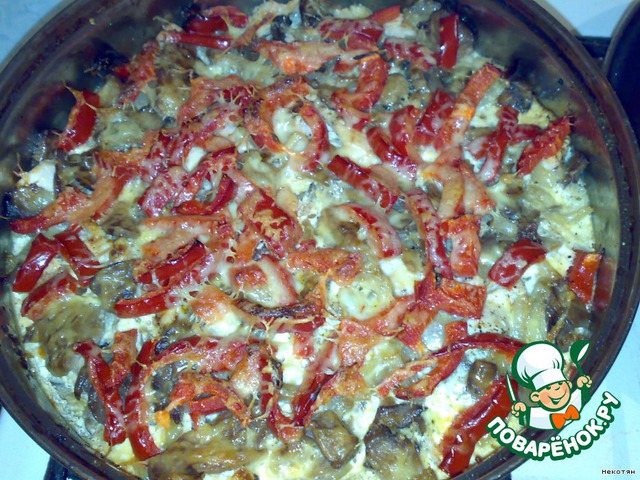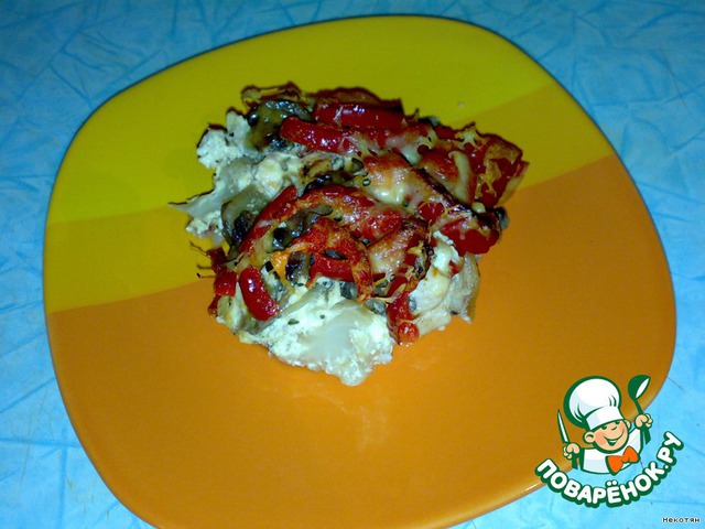 | Вкусненькая и сытная запеканочка с цветной капустой, курицей, грибами и т. д. |