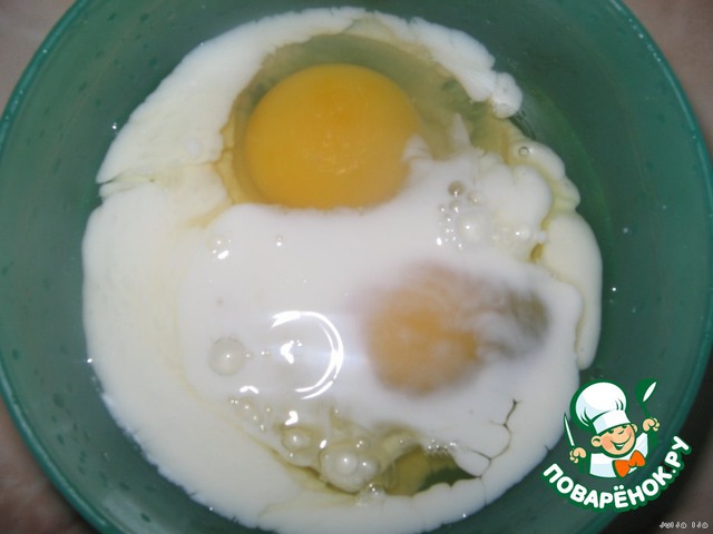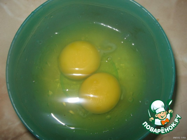Разбиваем в мисочку, пригодную для микроволновой печи, 2 яйца.