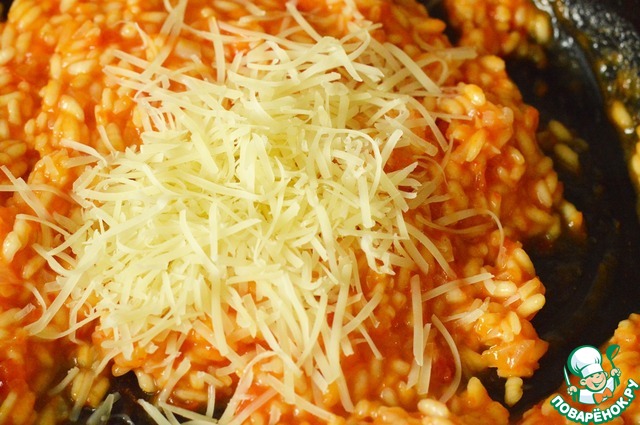 6. Затем добавить перченую смесь, перемешать, добавить остальное сливочное масло, перемешать, добавить пармезан, перемешать.