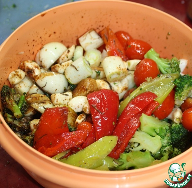 Добавте прованские травы, соль, немного растительного масла. Перемешайте и запекайте в рукове при температуре 180 С 30 минут.