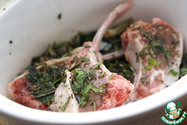 Каре ягненка с мятным желе и гарниром из цукини