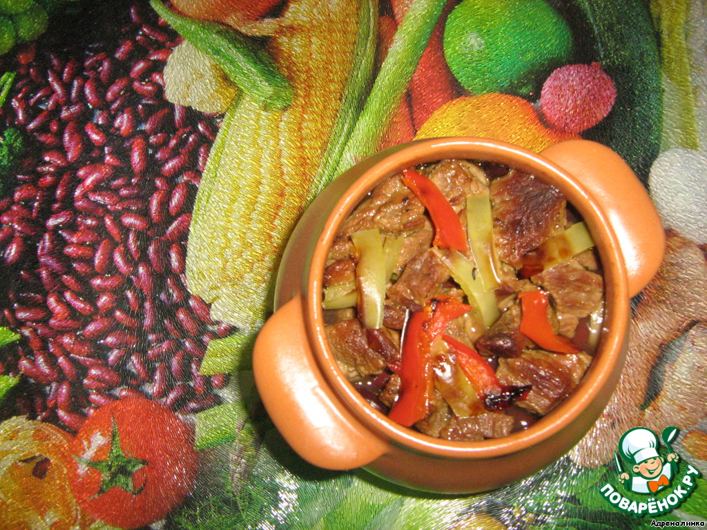 Говядина с грибами и фасолью