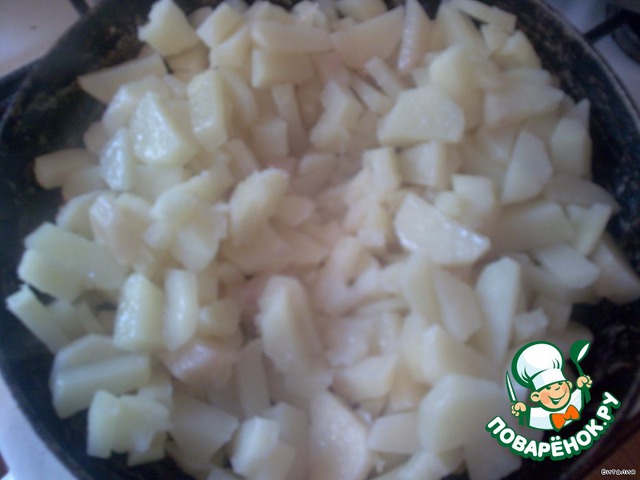 Картофель почистить, порезать и тоже обжарить до полуготовности.