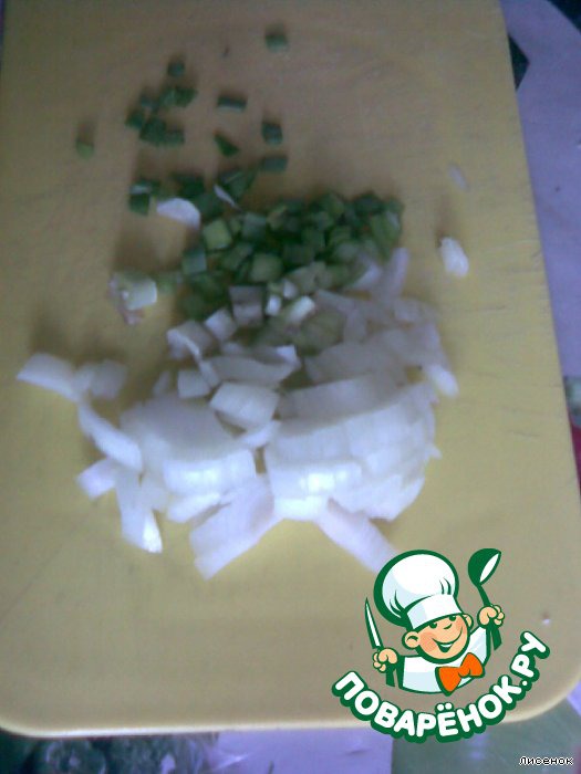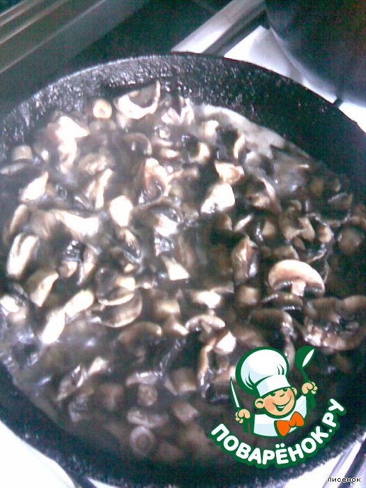 лук измельчить и добавить к грибам (когда выпарится жидкость)