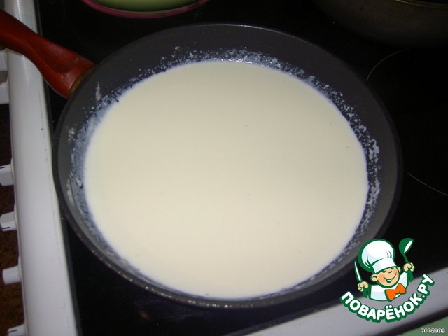 2. Соус молочный: муку подсушивают без изменения цвета, охлаждают, разводят частью теплого молока, перемешивают, соеденяют с оставшимся молоком, солью, сахаром маслом, и проваривают 7 -10 минут. Процеживают и вновь доводят до кипения.