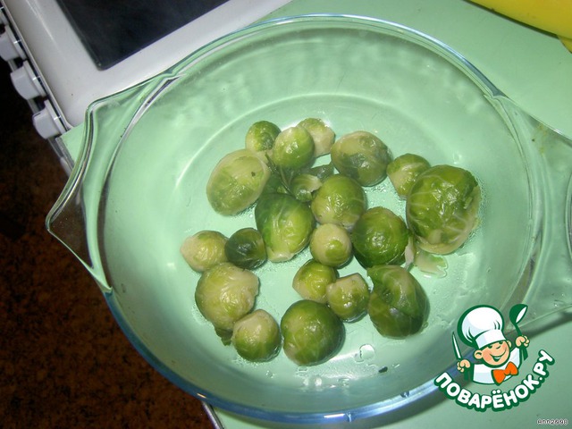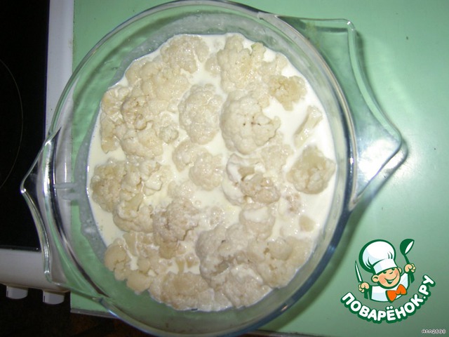 3. На смазанную маслом форму укладывают кочешки вареной капусты, заливают соусом, посыпают тертым сыром и запекают в духовке при 230 гр. до образования румяной корочки