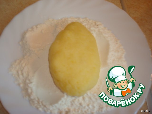 Из картофеля формировать зразы в виде котлеток, и обваливать в муке.