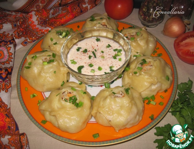 Благодаря добавлению в начинку филе морского языка манты получаются не сухими.