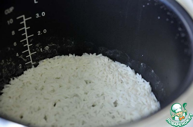 Рис промываем, заливаем водой в соотношении 1 к 2, доводим до кипения и варим 15 минут на медленном огне.